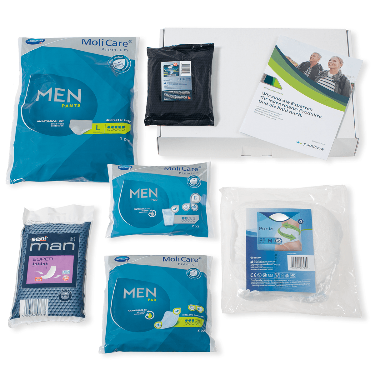 Publicare bietet Ihnen die Möglichkeit eine Auswahl verschiedener Inkontinenzprodukte im Musterset kostenlos auszuprobieren – online bestellen und zu Hause testen. Für Frauen, Männer und ihre Bedürfnisse.