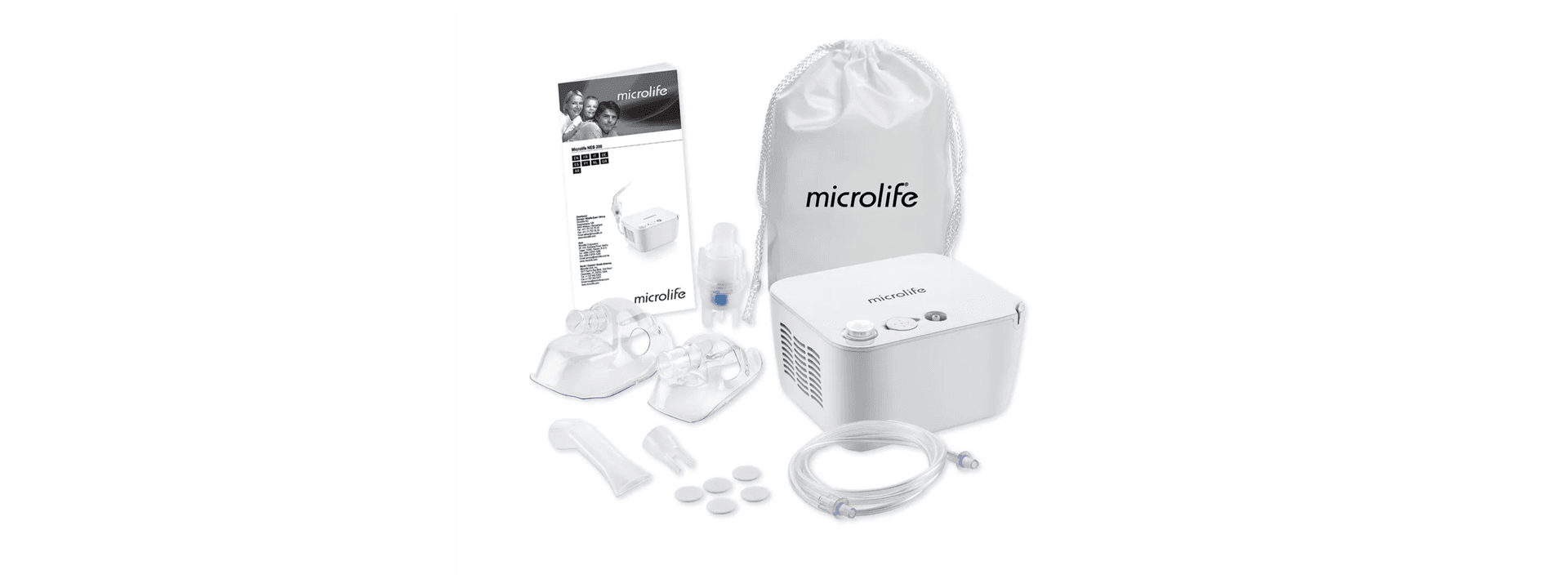 Microlife® komplett Set zu NEB 200 | 1x Maske klein 1x Maske gross 1x Luftschlauch 1x Vernebler 1x Mundstück 1x Nasenstück 5x Ersatzfilter | |