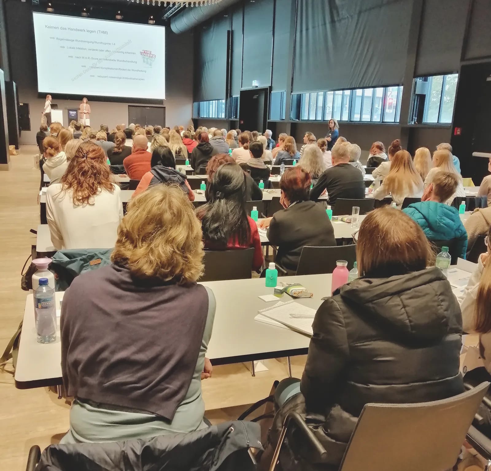 Erste Fragen vom Publikum und danach gleich weiter mit dem nächsten Speech von Jeannette Wüthrich, zertifizierte Wundmanagerin. Was tun bei einer Infektgefahr? Wie können wir Keimen das Handwerk legen? Diese Fragen beantwortete Frau Wüthrich in den nächsten 50 Minuten.